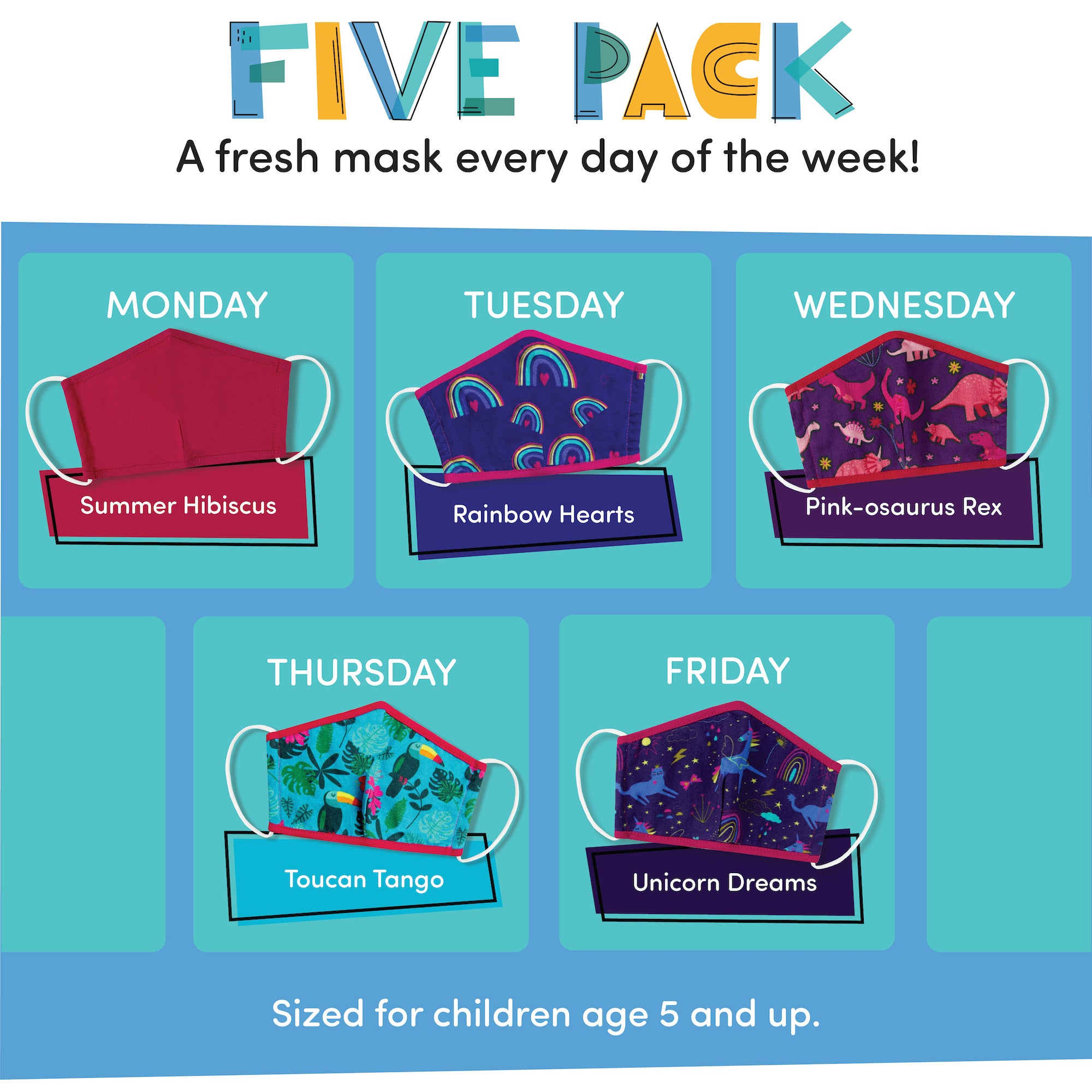 Variety 5-Pack - Rainbows & Unicorns Reusable Face Masks