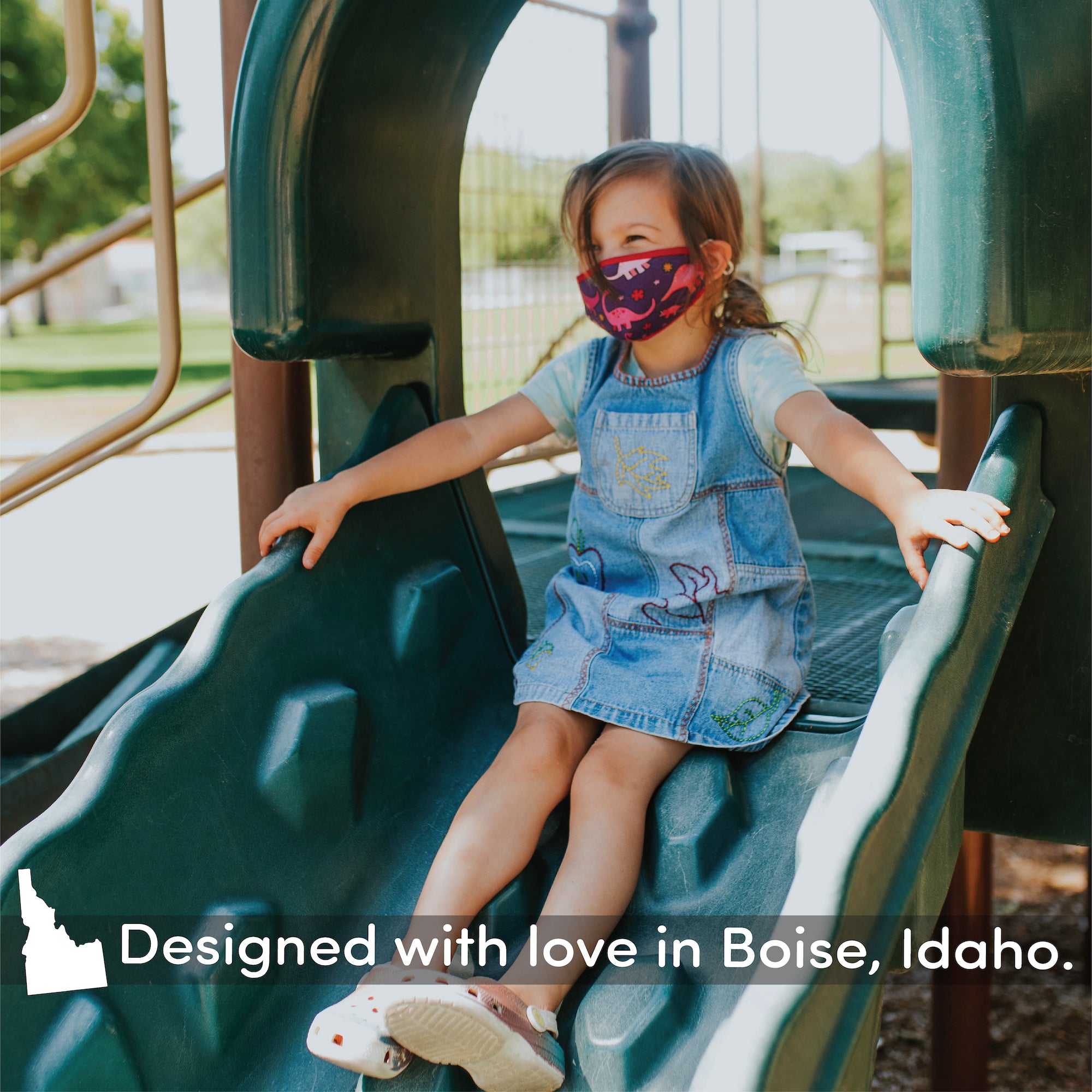 A FACE COVERING KIDS WILL WANT TO WEAR - A triangular, peaked nose makes it easier for kids to correctly fit their mask themselves; just ask them to remember 'point up'. Our cloth face shields for kids are sewn from 100% cotton jersey material that looks and feels just like your child's favorite cozy t-shirt. Plus, we collaborate with local artists in Boise, Idaho to create fun patterns for boys and girls, as well as easy-to-coordinate, gender-neutral solids.